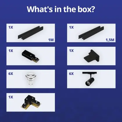 Beschreibung Bright Choice Komplettset 1-Phasen Rail L 1x 1,5 Meter Schwarz | incl. 6x Spot + GU10 2700K 3W Dimmbar + Abschlusskappe, Stromanschluss und L -Verbinder