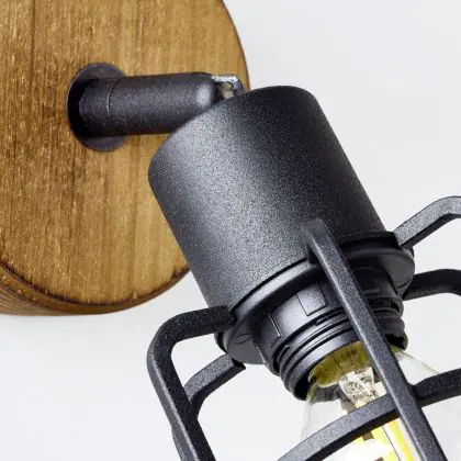 Beschreibung Brilliant Gwen Wandleuchte Metall Holz Schwarz | Geeignet für 1x E14
