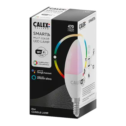 Beschreibung Calex Smart Tuya Wifi E14 Kerze 5W 470lm - 822-840 Abstimmbares Weiß | RGBW - Dimmbar - Ersatz für 40W