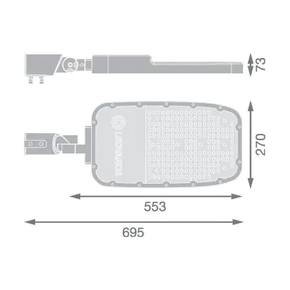 Beschreibung Ledvance Led-Straßenbeleuchtung Area Extra Large RV35ST Aluminium Grau 150W 20250lm 155X69D - 740 Kaltweiß | IP66 - Asymmetrisch