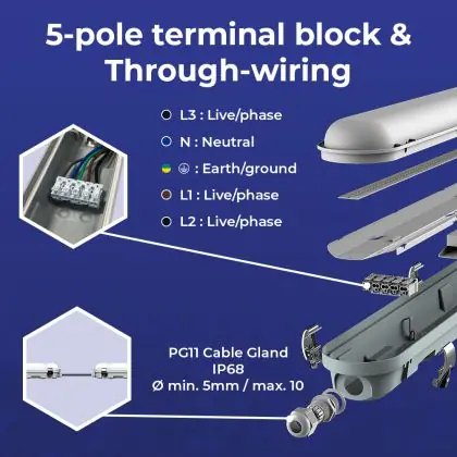 Die Noxion LED Wasserdicht Deckenleuchte Poseidon V2.0 150cm 55W 4000K IP65 kommt nicht nur mit einer langen Lebensdauer von 50.000 Stunden daher, sie ist mit einer Schutzklasse von IP65 auch besonders resistent gegen Staub und Feuchtigkeit. Zudem ist im Kaufpreis eine Garantie von 5 Jahren enthalten.