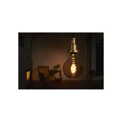 Der Leuchtkörper dieser LED besteht aus goldfarbenem Glas, das einen schönen Vintage-Look erzeugt. Außerdem wird der Blick auf die LED-Filamente im Lampen-Inneren freigegeben, die eine außergewöhnliche Spiralform haben.