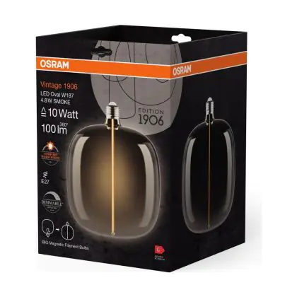 Die Osram Vintage 1906 LED E27 Special Fadenlampe Smoke Tall 4.8W 100lm - 818 Extra Warmweiß | Dimmbar - Ersatz Für 15W ist eine effiziente E27 LED-Lampe mit Retrodesign und der perfekte Ersatz für Ihre konventionellen 15W Lampen mit E27. Zudem strahlt sie Licht in der Farbtemperatur 1800K - Extra Warmweiß aus und punktet durch eine lange Lebensdauer.