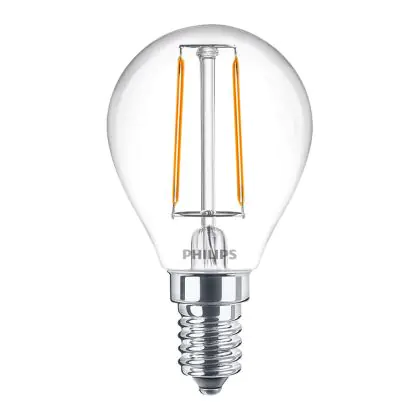 Die Philips Corepro LED Lustre E14 Kugel Fadenlampe Klar 2.2W 250lm - 840 Kaltweiß | Ersatz für 25W ist eine effiziente E14 LED-Lampe mit Retrodesign und der perfekte Ersatz für Ihre konventionellen 25W Lampen mit E14. Zudem strahlt sie Licht in der Farbtemperatur 4000K - Kaltweiß aus und punktet durch eine lange Lebensdauer.